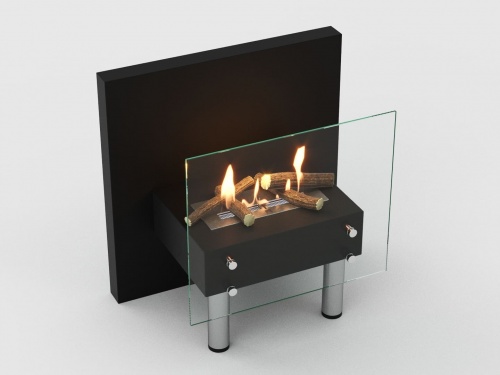 Представляет собой сборный металлический каркас с топливным блоком Lux Fire 300 М, закрепленный на 4 дистанционных держателях к защитному стеклу с упором на мебельные ножки.
