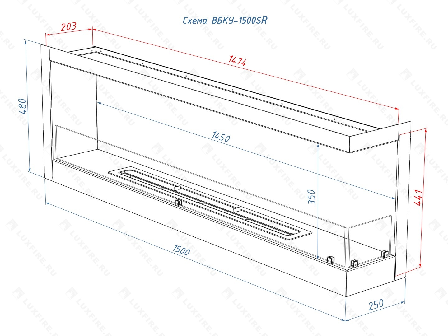 Встроенный биокамин Lux Fire Угловой 1500 SR (правый угол)